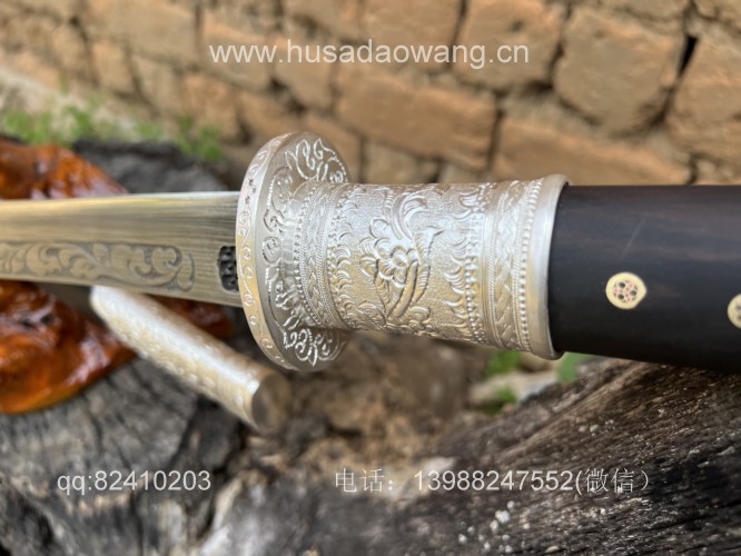 商品简介:这款刀由户撒刀嫡派传人线乔发纯手工锻造,刀条采用特硬百炼花纹钢千锤百炼配方淬火而成,刚柔相济斩铁截钉,一体全龙骨锻造结实耐用,刀条表面手工雕刻唐草花纹,古香古色,刀鞘刀柄采用优质黑檀木手工制作,包厚99纯银配件,收藏实用皆可!