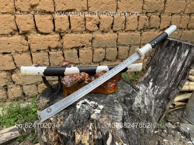 商品简介:这款刀由户撒刀嫡派传人线乔发纯手工锻造,刀条采用特硬百炼花纹钢千锤百炼配方淬火而成,刚柔相济斩铁截钉,一体全龙骨锻造结实耐用,刀条表面手工雕刻唐草花纹,古香古色,刀鞘刀柄采用优质黑檀木手工制作,包厚99纯银配件,收藏实用皆可!